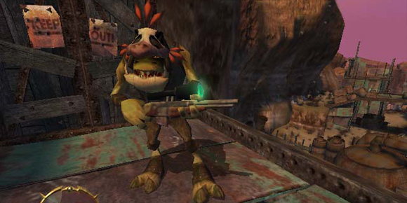 Changes that even modern Vykker science cannot duplicate! Not one to pose as garnish, he makes it up to Sekto Springs all right, but Sekto and his Wolvarks get their Steef served up with a frothy can of whoop arse, prepared by our beloved hombre-sin-nombre. Yes folks, Oddworld just got Stranger.